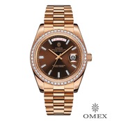 【スペシャルカスタムモデル】 OMEX ワンナイト オートマチック 合計1.9カラット モアサナイトカスタム ピンクゴールド×チョコレート