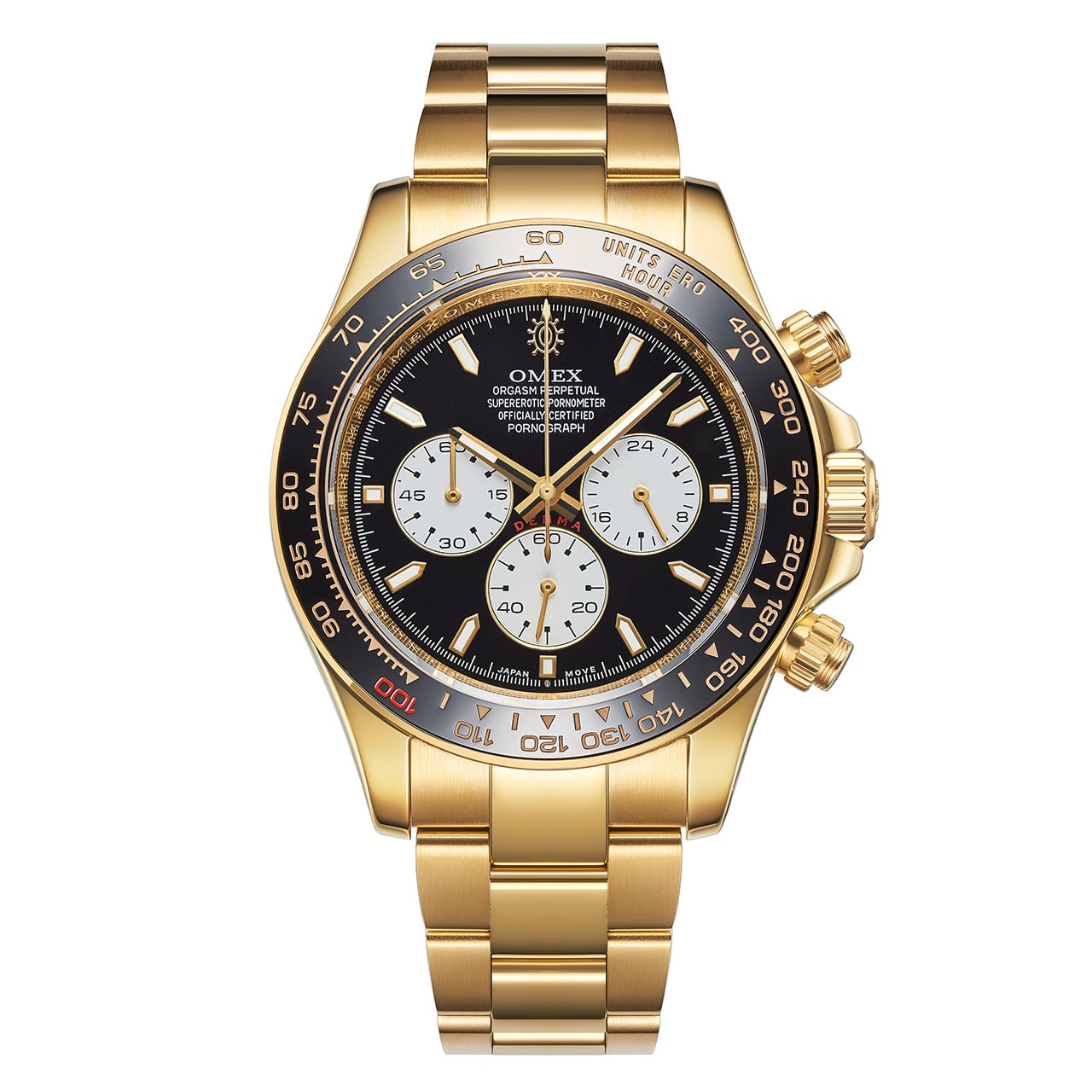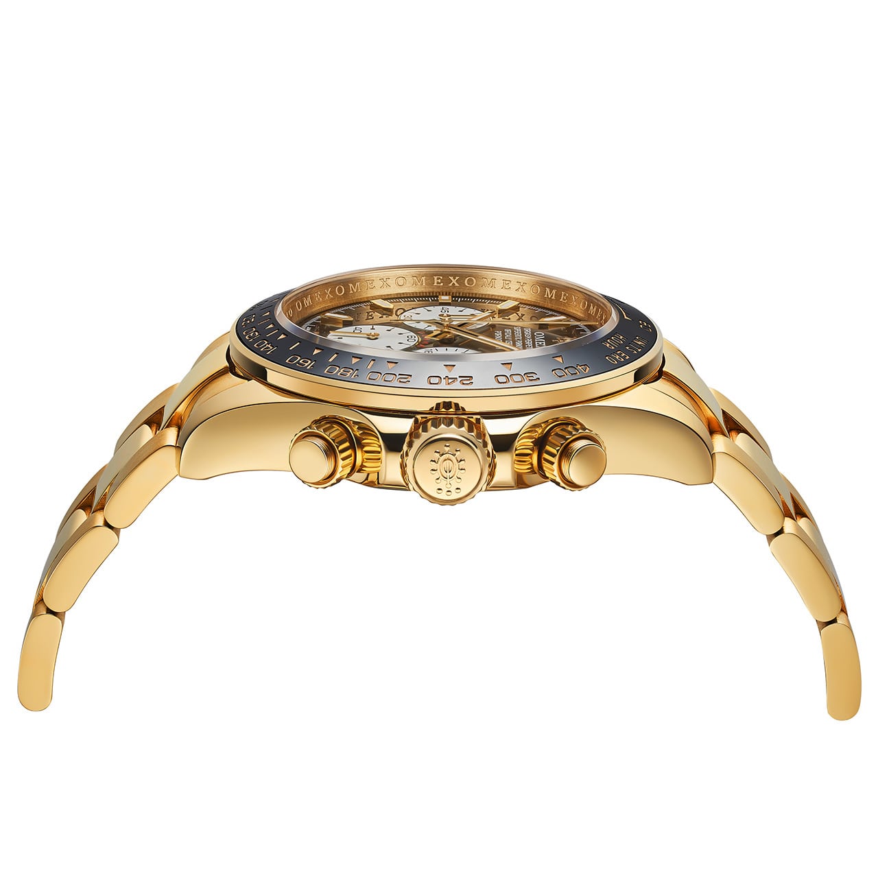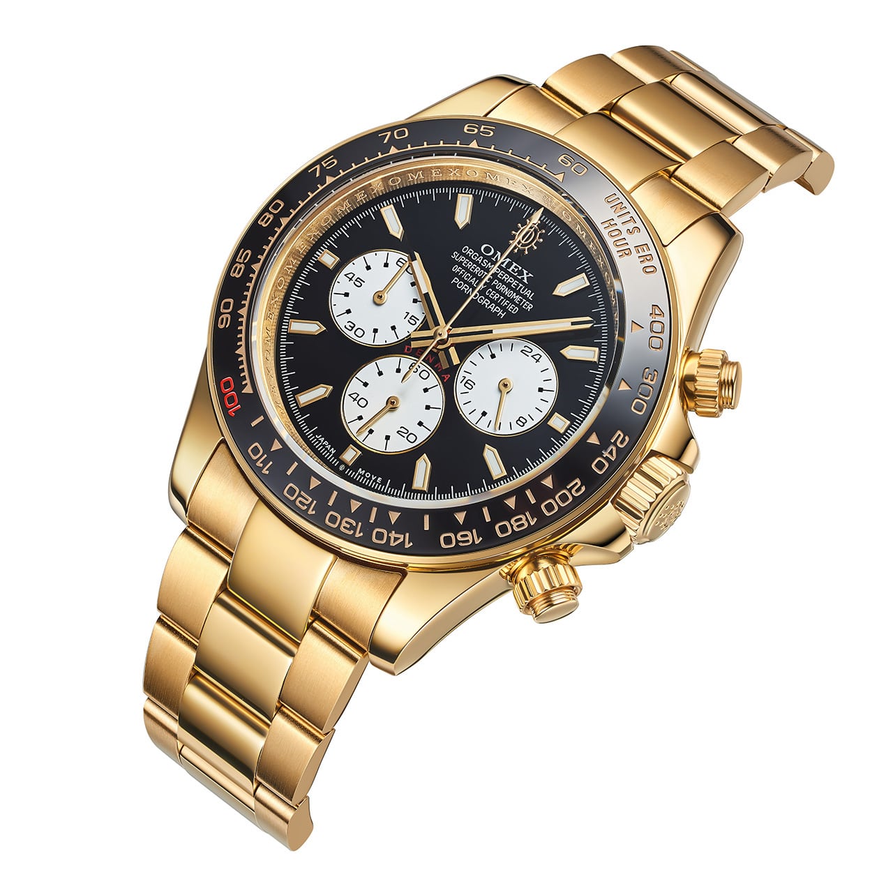 【レビュー特典付き】OMEX DENMA オ・マン ゴールド クロノグラフ 男性用 メンズ腕時計 クォーツ時計 日常生活用強化防水 日本製ムーブメント