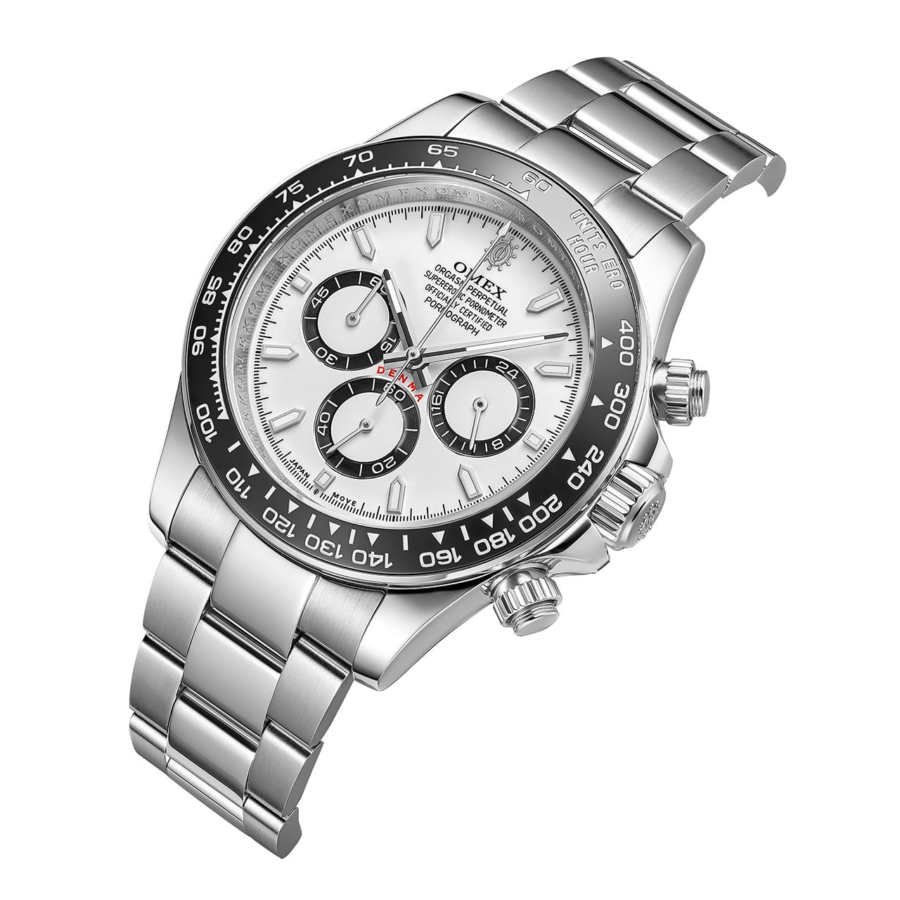 【レビュー特典付き】OMEX DENMA シルバー×ホワイト クロノグラフ 男性用 メンズ腕時計 クォーツ時計 日常生活用強化防水 日本製ムーブメント