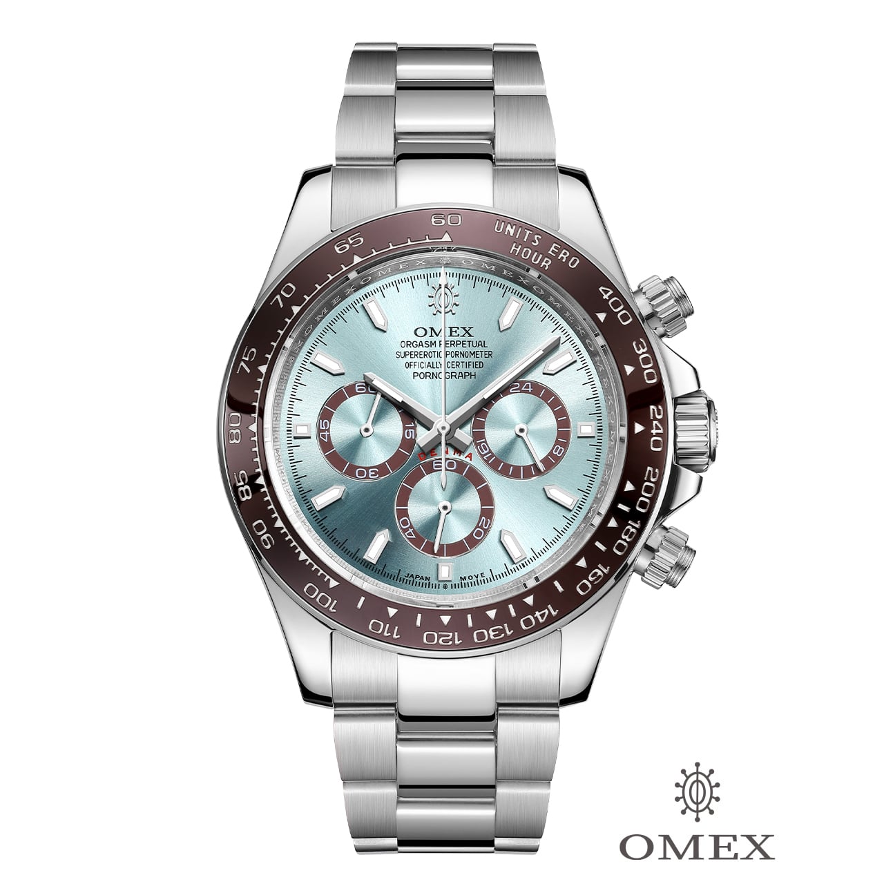 【レビュー特典付き】OMEX DENMA アイスブルー クロノグラフ 男性用 メンズ腕時計 クォーツ時計 日常生活用強化防水 日本製ムーブメント