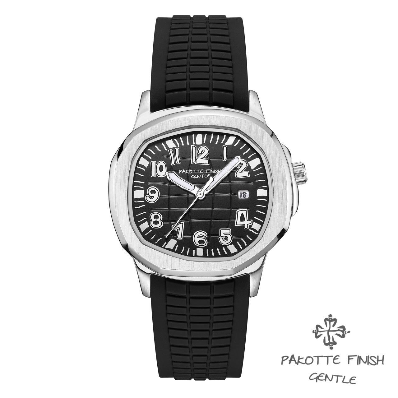 PAKOTTE FINISH アクメノート コミック シルバー×ブラック 男性用 メンズ腕時計 クォーツ時計 日常生活防水 日本製ムーブメント