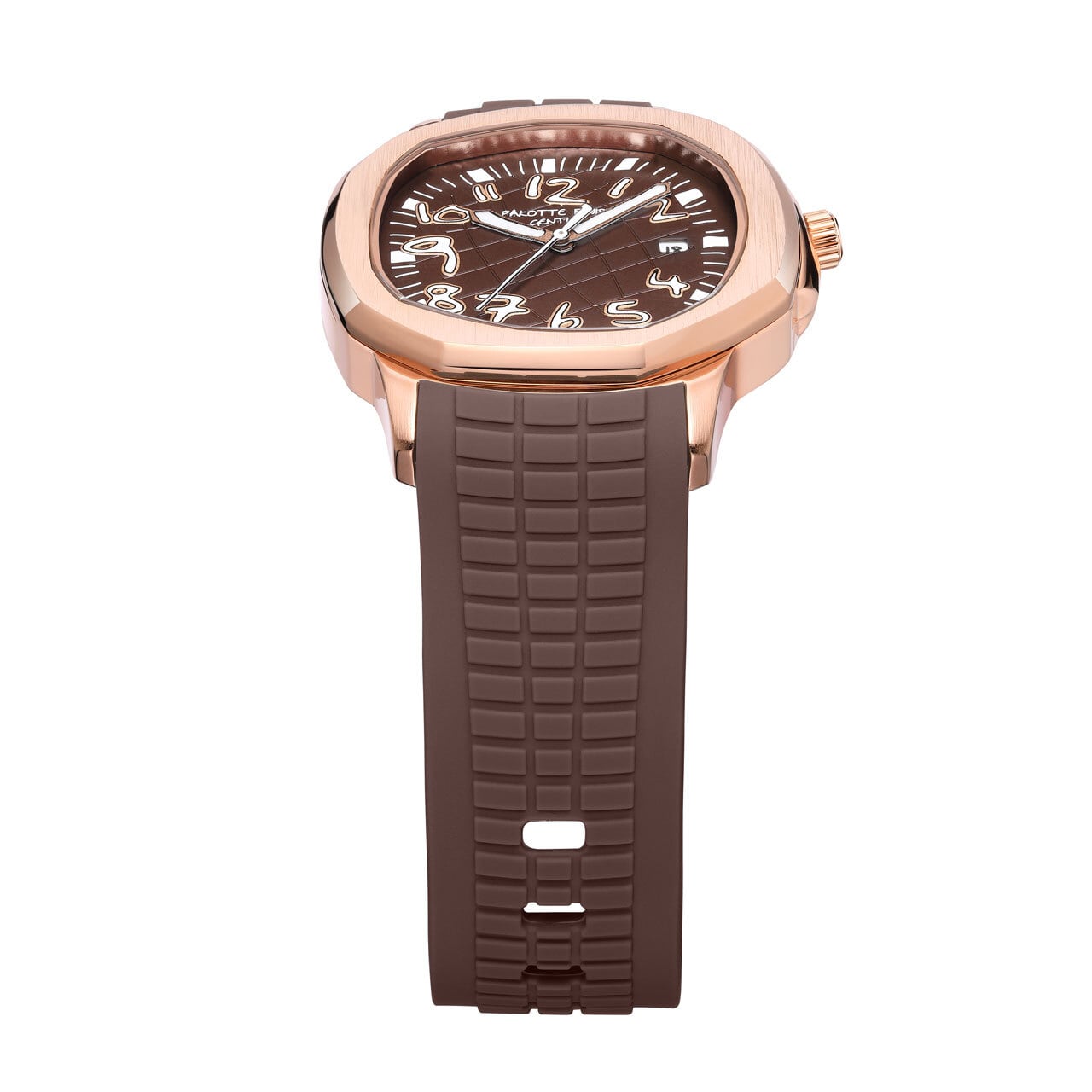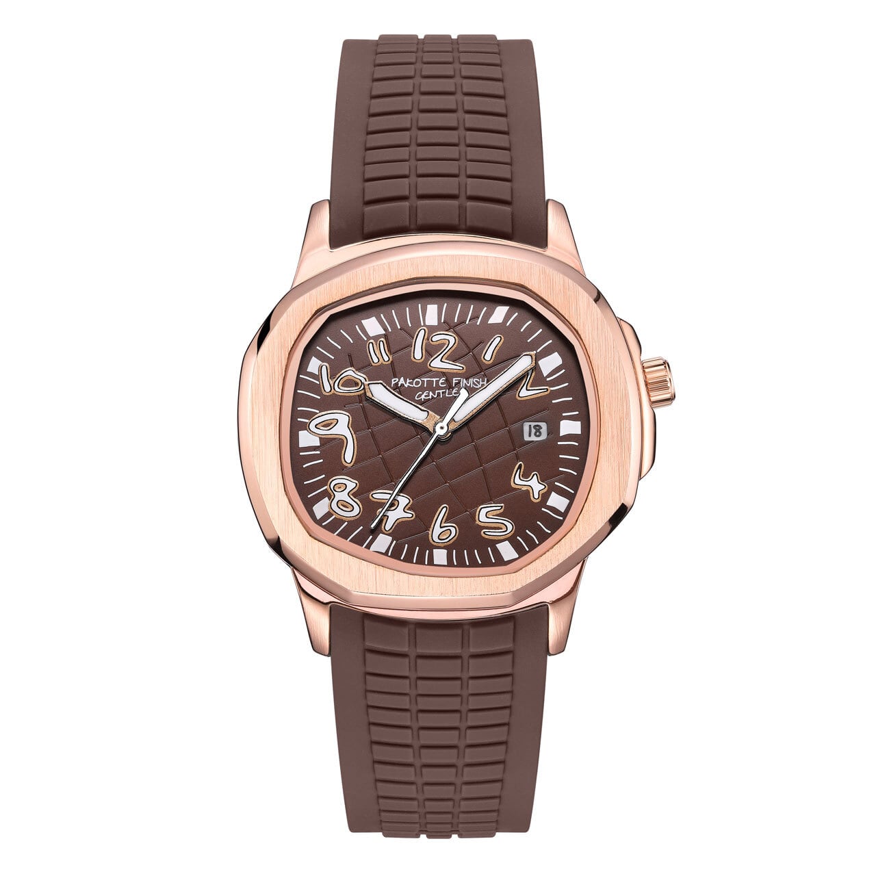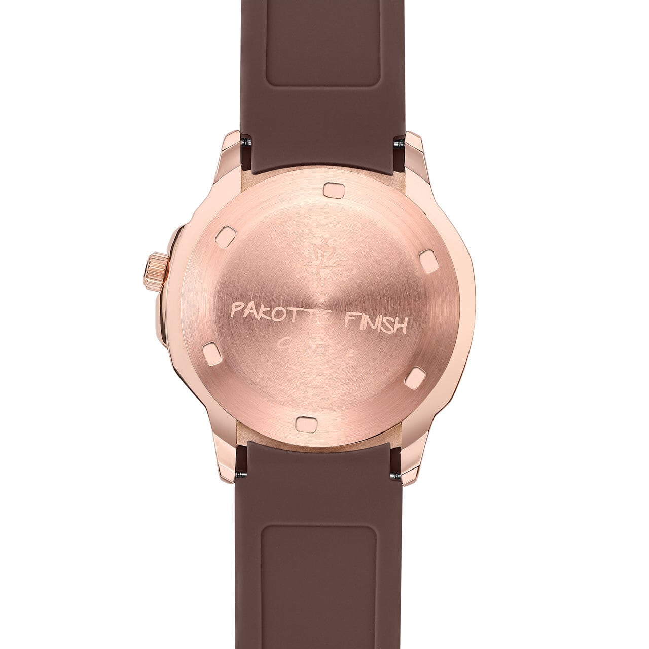 PAKOTTE FINISH アクメノート コミック ピンクゴールド×コーヒー 男性用 メンズ腕時計 クォーツ時計 日常生活防水 日本製ムーブメント