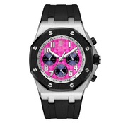 【レビュー特典付き】アダルトビデオ エロティック (シルバー×ピンク) 日本製ムーブメント メンズ腕時計 男性用 クロノグラフ クォーツ時計